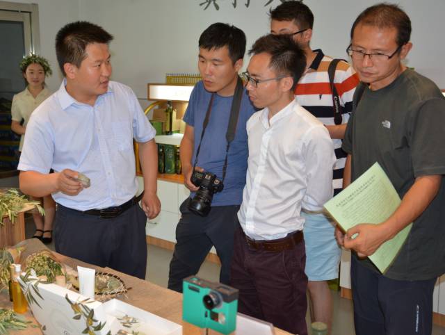 報道團在祥宇佛堂溝油橄欖萬畝示范基地,看到漫山遍野覆蓋的橄欖樹,無不驚嘆在這大山深處種植的金疙瘩。記者們紛紛放下手中的相機,走進種植園與橄欖樹零距離接觸,掏出了自己的手機與橄欖樹玩起了自拍。采訪團就武都區(qū)油橄欖產(chǎn)業(yè)發(fā)展情況、佛堂溝油橄欖示范園建設和祥宇油橄欖公司發(fā)展歷程采訪了祥宇公司董事長李慧,通過深入的采訪交流,報道團的記者對祥宇佛堂溝油橄欖示范園發(fā)展的過程有了大概的了解。
