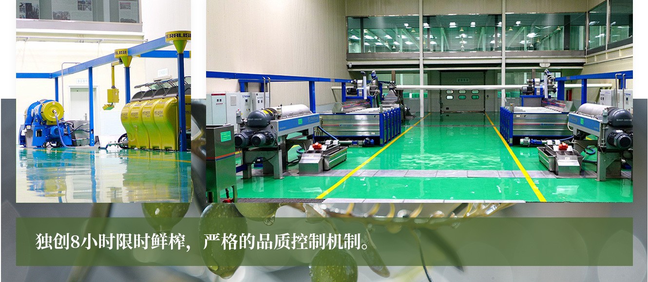 為了生產(chǎn)出頂級品質(zhì)的橄欖油,公司專門訂制了5萬個食品級專用果筐,從采摘到壓榨控制在8小時以內(nèi),先后引進了一條意大利貝亞雷斯和兩條德國福樂偉橄欖油冷榨生產(chǎn)線,建成了亞洲最大的特級初榨橄欖油生產(chǎn)車間。