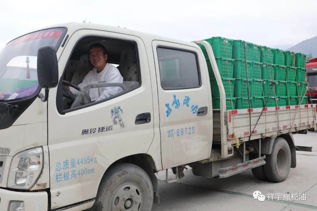 村民帶著一筐筐的油橄欖鮮果滿載而歸,臉上露出了豐收的喜悅。
