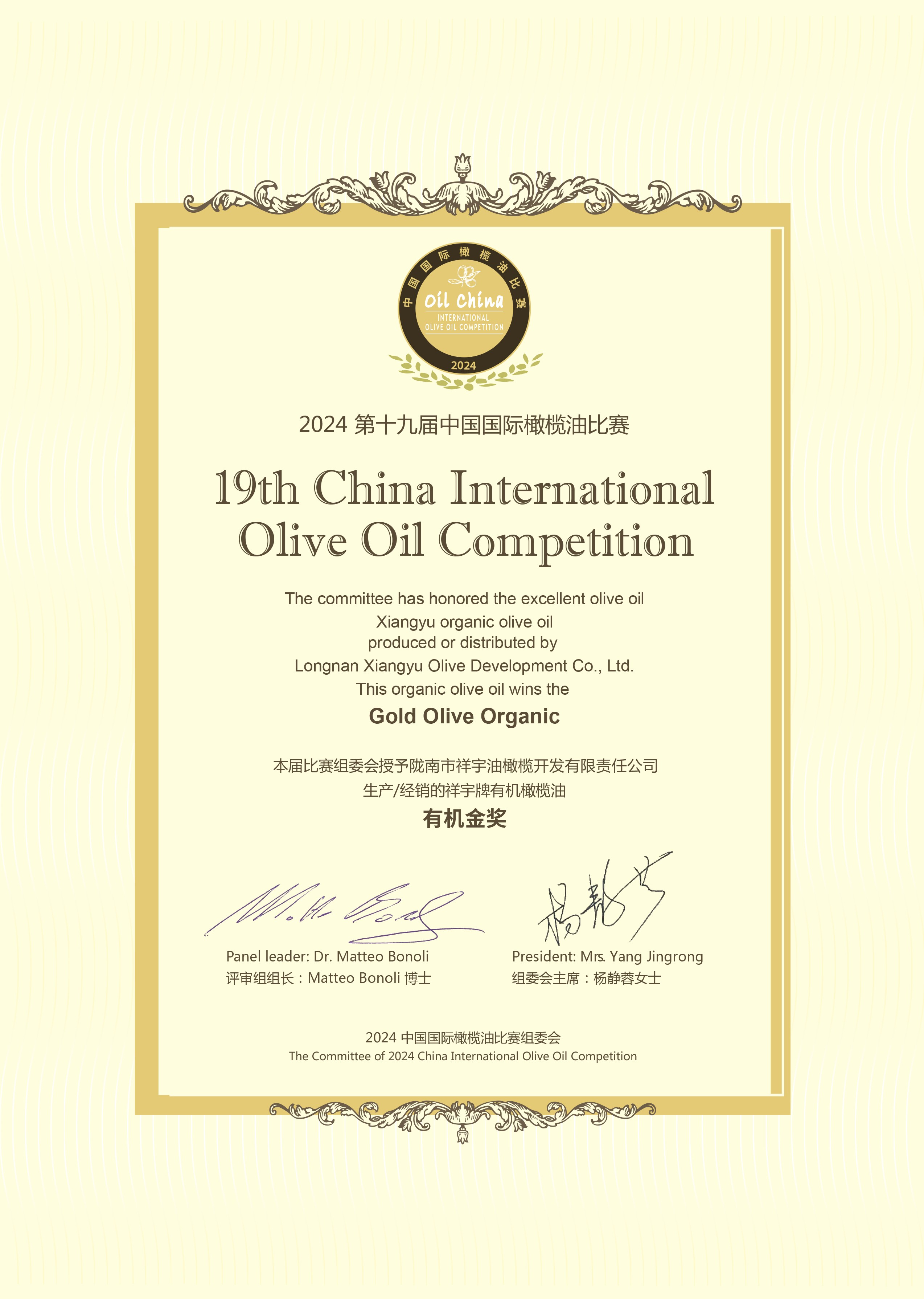 祥宇橄欖油在2024年第19屆中國國際橄欖油比賽中再次榮獲金獎!